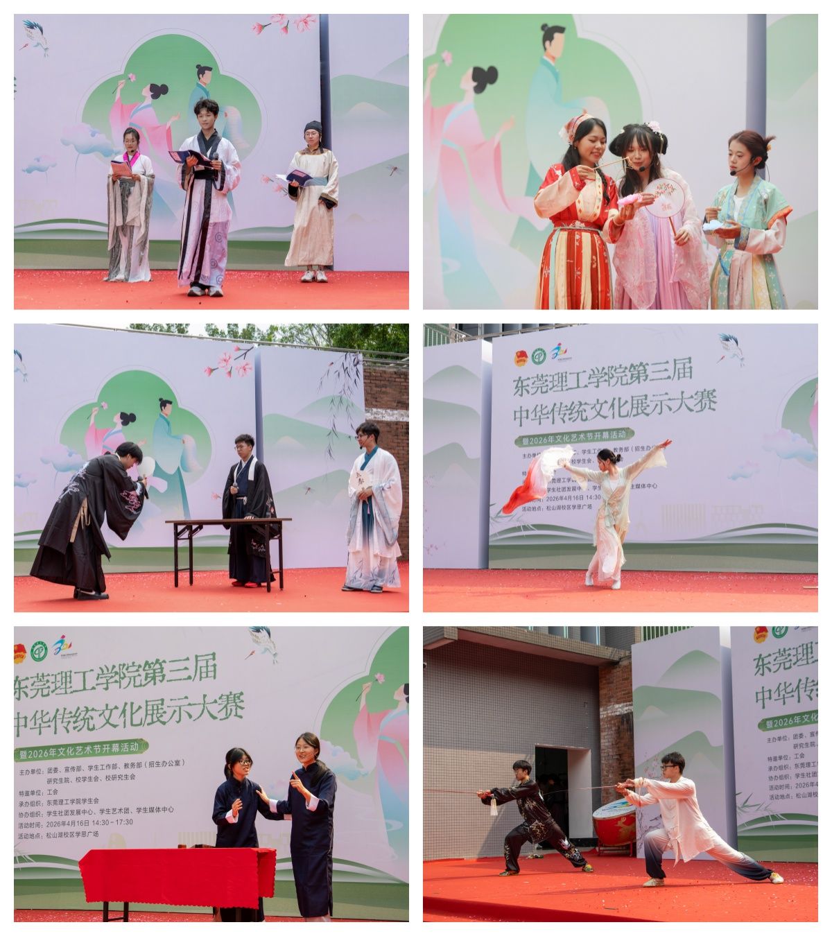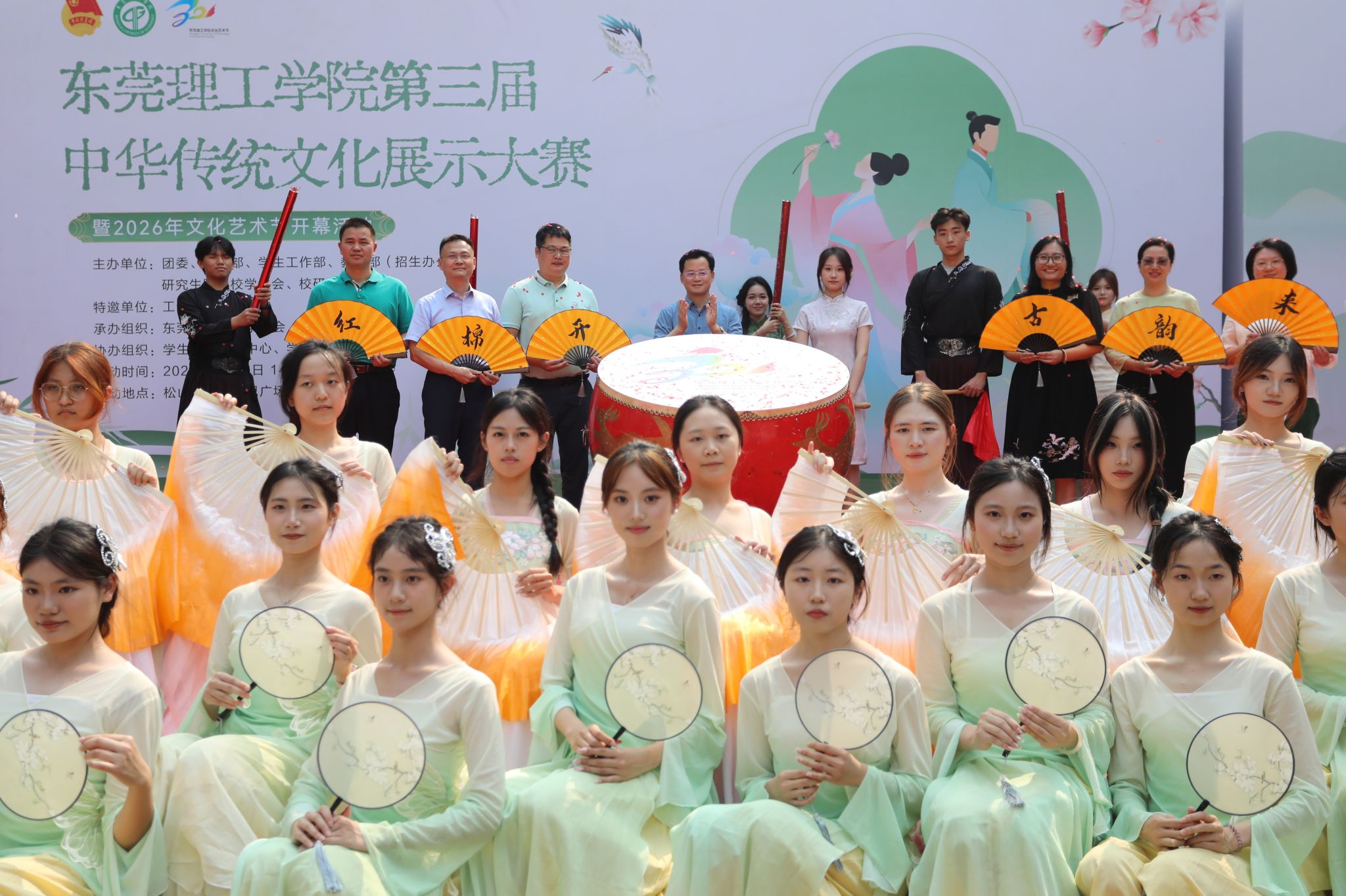 4月16日,由校团委、宣传部、学生工作部、教务部(招生办公室)、研究生院、校学生会、校研究生会联合主办,校工会特别支持,学生社团发展中心、学生艺术团、学生媒体中心共同承办的第三届中华传统文化展示大赛暨2026年文化艺术节开幕活动在松山湖校区学思广场举行。校党委书记林锐熙,文化艺术节组委会成员,各部门、各二级学院负责人及师生代表出席活动。